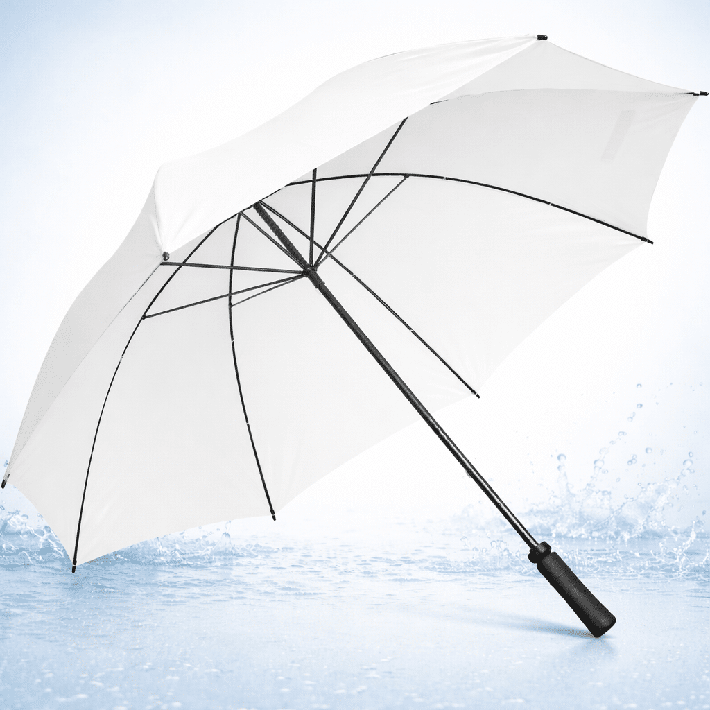 Den vita färgen ger ett rent och professionellt uttryck samtidigt som den reflekterar ljus och gör paraplyet lätt att hitta bland din utrustning. Modellen finns även i andra färger, till exempel som golfparaply, vilket gör det enkelt att välja den variant som passar din stil.